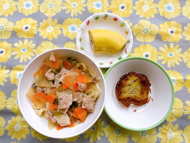 ~今日のお給食~ ・ミートローフ ・もやしのナムル ・ごはん ・コンソメスープ(にんじん・コーン・たまねぎ) ・なし ~今日のおやつ~ ・牛乳 ・ピザ…