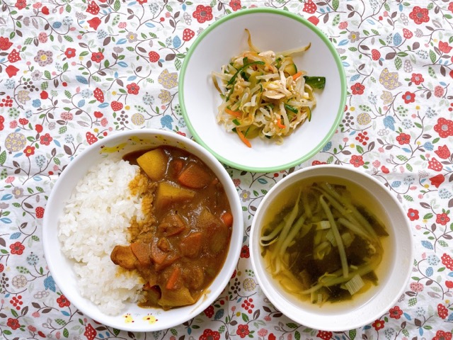 ~今日のお給食~ ・チキンカレー ・きゅうりとささみの和え物 ・わかめスープ ~今日のおやつ~ ・牛乳 ・お誕生日ケーキ …