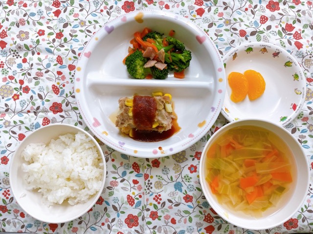 ~今日のお給食~ ・ミートローフ ・ブロッコリーのサラダ ・ごはん ・コンソメスープ(キャベツ・えのきたけ・にんじん) ・みかん ~今日のおやつ~ ・…