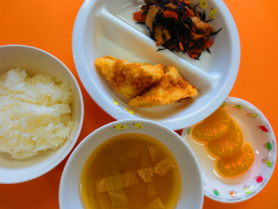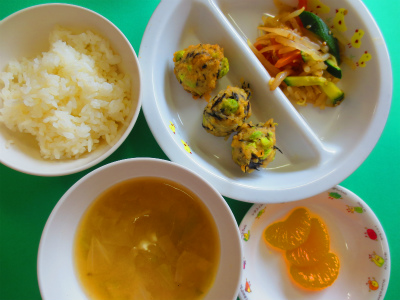 7月28日 草加なかよし保育園の給食ブログBy なかよし保育園2017年7月28日 ~今日のお給食~ ・まさご揚げ ・もやしのナムル ・ごはん ・キャベツとえのきの味噌汁 ・みかん ~今日のおやつ~ ・えだまめ
