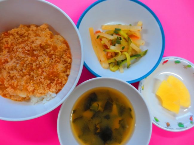 7月29日 草加なかよし保育園の給食ブログBy なかよし保育園2017年7月29日 ~今日のお給食~ ・そぼろ丼 ・大根サラダ ・豆腐とわかめの味噌汁 ・パイン ~今日のおやつ~ ・ヨーグルト ・ビスケット