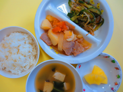 8月1日 草加なかよし保育園の給食ブログBy なかよし保育園2017年8月1日 ~今日のお給食~ ・肉じゃが ・きゅうりの塩こんぶ和え ・ごはん ・豆腐と小松菜の味噌汁 ・パイン ~今日のおやつ~ ・フライドポテト