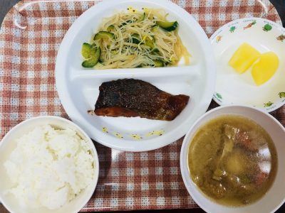 1月10日 草加なかよし保育園の給食ブログBy なかよし保育園2018年1月10日 ~今日のお給食~ ・鮭のケチャップ照り焼き ・春雨サラダ ・ごはん ・豚汁 ・りんご ~今日のおやつ~ ・牛乳 ・おいなりさん 今日から切干大根を干し…