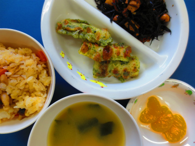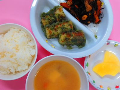 10月14日 草加なかよし保育園の給食ブログBy なかよし保育園2016年10月14日 ~今日のお給食~ ・ちくわの磯辺揚げ ・ひじき煮 ・きのこごはん ・わかめと豆腐の味噌汁 ・みかん ~今日のおやつ~ ・お麩のラスク