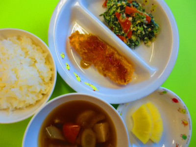 12月8日 草加なかよし保育園の給食ブログBy なかよし保育園2016年12月8日 ~今日のお給食~ ・鮭フライ ・ほうれんそうの白和え ・ごはん ・けんちん汁 ・パイン ~今日のおやつ~ ・ヨーグルト ・おせんべい