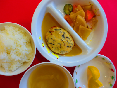 12月9日 草加なかよし保育園の給食ブログBy なかよし保育園2016年12月9日 ~今日のお給食~ ・豆腐ハンバーグ ・大根サラダ ・ごはん ・キャベツとにんじんの味噌汁 ・モモ ~今日のおやつ~ ・アメリカンドック