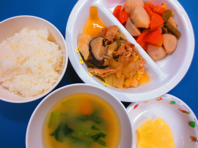 12月13日 草加なかよし保育園の給食ブログBy なかよし保育園2016年12月13日 ~今日のお給食~ ・すきやき風煮 ・里芋の煮物 ・ごはん ・小松菜とにんじんの味噌汁 ・パイン ~今日のおやつ~ ・豆腐のドーナツ