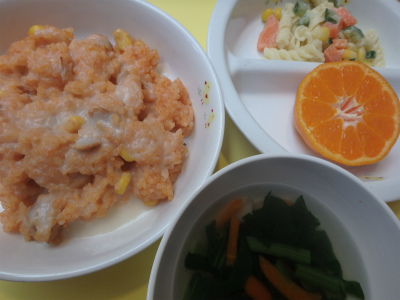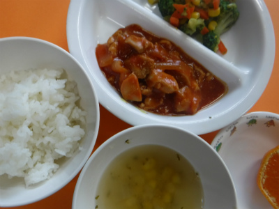 12月24日 草加なかよし保育園の給食ブログBy なかよし保育園2015年12月24日 ~今日のお給食~ ・鶏肉のトマト煮、 ・ブロッコリーのサラダ ・ごはん ・コーンスープ ・みかん ~今日のおやつ~ ・きなこもち