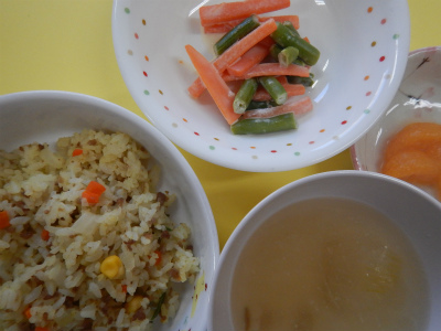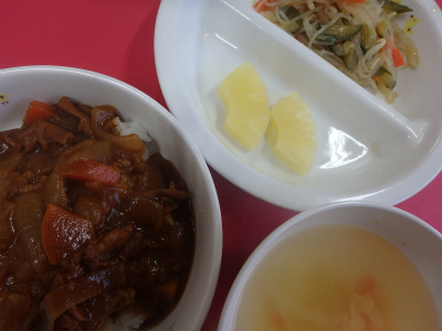 12月16日 草加なかよし保育園の給食ブログBy なかよし保育園2015年12月16日 ~今日のお給食~ ・ハヤシライス ・春雨サラダ ・キャベツとにんじんのコンソメスープ ・パイン ~今日のおやつ~ ・さつまいもスティック