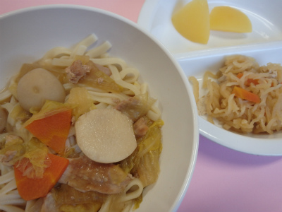 1月6日 草加なかよし保育園の給食ブログBy なかよし保育園2016年1月6日 ~今日のお給食~ ・おでん ・もやしのナムル ・わかめごはん ・たまねぎと油揚げのみそ汁 ・パイン ~今日のおやつ~ ・にんじんのホットケーキ