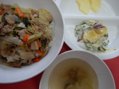 ~今日のお給食~ ・鶏肉の照り焼き ・もやしの中華風和え物 ・ごはん ・ほうれんそうとえのきのみそ汁 ・パイン ~今日のおやつ~ ・やきいも 今日のおやつはみんなが…