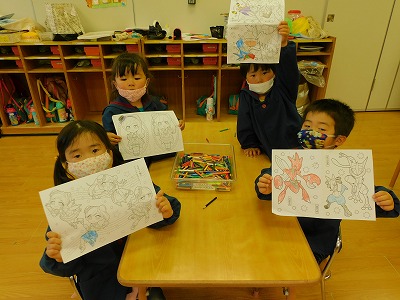 パンダ組のお友達は塗り絵が大好きで 今日も楽しそうに行なっていました♪ 枠の中を上手に塗れるようになってきて お友達同士何色で塗るか相談しながら 楽しそうに塗ってい…