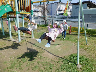 今日幼稚部のお友達は 神社公園に遊びに行きました☆ ブランコで遊びました! 自分達で遊ぶルールを決め、仲良くブランコに乗る事が できました♪ &nbs…