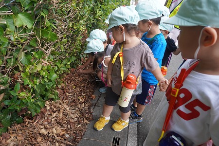 今日ペンギン組のお友達は 治水緑地へお散歩に行きました♪ お友達や先生と手をつなぎ 上手に歩けるようになってきました☆ 途中でせみのぬけがらや果物を発…