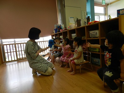 今日は音楽指導があり、 パンダ組のお友達は運動会のマーチングで行なう ダンスの練習をしました♪ 「みぎて♪ひだりて♪」などと 動きに合わせて声を出し、 一生懸命踊っ…