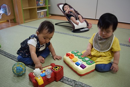 今日ラッコ組のお友達は 室内で遊びました♪ 音がでるおもちゃを鳴らして楽しんだり ボールをコロコロ転がしてニコニコ笑っていました★ &n…