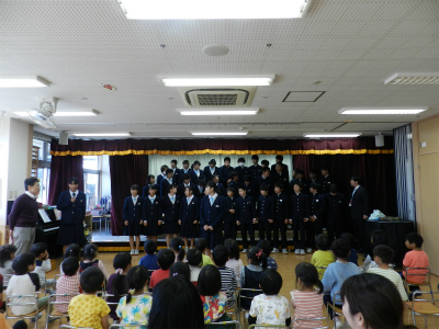 今日は両新田中学校の生徒の皆さんが来てくれ 合唱鑑賞会を行いました(*^_^*) とっても真剣に見ていた子ども達! 2曲披露してくれとっても素敵な合唱…