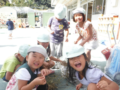 今日キリン組のお友達が園庭で遊んでいると あさがおのつるを発見! つるをよく見てみると種を見つけました!! みんなでたくさんとりました(…