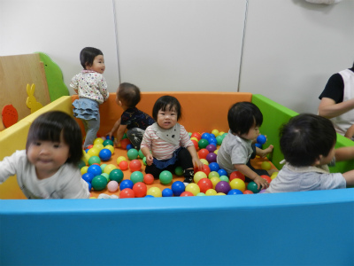 今日ラッコ組のお友達はボールプールで遊びました(^○^) サークルの外にボールをポーンとなげたり、 ボールをニギ二ギ触って感触を楽しんだりしていました♪ お片付けもとっても上手に…