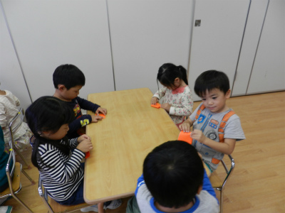 今日は英語教室があり、パンダ組のお友達も元気に参加しました♪ 今月末はハロウィン!ということでおばけの歌やハロウィンの単語を 勉強しました(^○^) …