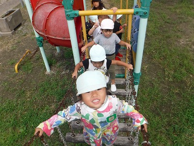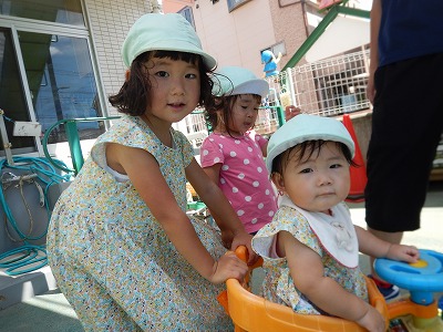 今日は、みんなで園庭で遊びました! 車の乗り物や三輪車は大人気(*^^*) 他にも、お砂場やロッククライミングで遊びました♪  …