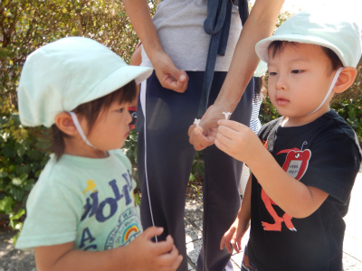 今日ペンギン組のお友達は辰井川沿いを お散歩しました(*^_^*) 歩いていると小さなお花を発見!! お花の他にも虫や葉っぱを見つけ とてもうれしそうにしていました…