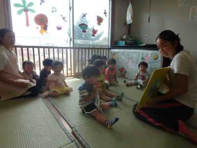 今日ペンギン組のお友達はお部屋で遊んだり ダンスをしたりしました(^○^) ごはんの前にはみんなで大きな絵本をみました♪ いつも読んでいる絵本よりも大…