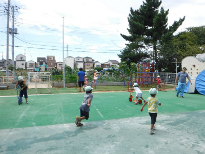 今日は幼稚部、保育部みんなで園庭で 遊びました(*^_^*) 幼稚部のお友達は鬼ごっこをし 「まてまてー!」と楽しそうに遊んでいました♪ …