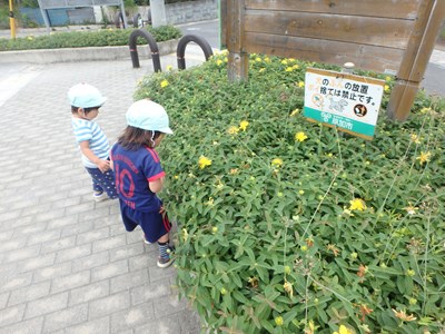今日イルカ組のお友だちは桃の木公園に 行きました(^^)     桃の木公園では黄色いお花がたくさん咲いており じーっと見つめたり触ったりして 興味津々でした(●^o^●)    …