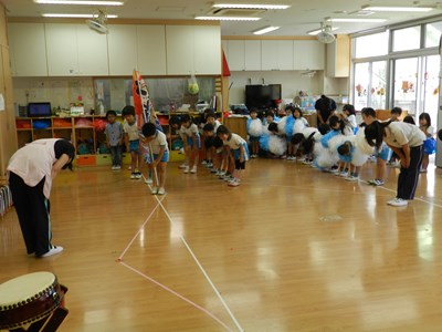 本日も幼稚部さんは踊りの練習をしました。 きちんと礼をしてから始めます。 途中で水分補給です。 ライオン組さんを集めて「手をピンと伸ばすとかっこいいよ」 よりかっこいい踊りをめざす幼稚部さんでした。 &nb…