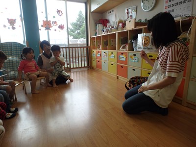 本日は9月生まれのお友だちの誕生日会を行いました。 前にお休みしていたお友だちと合わせて6人のお祝いをしました。 先生の出し物は「さるかに合戦」のパネルシアター。 大変盛り上がりました♪ 今月誕生日の先生にもお誕生日カー…