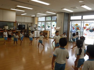 本日はお誕生日会を行いました。 6月生まれのお友だちと先月の誕生日会をお休みした お友だちのお祝いをしました。 先生の出し物は影絵クイズと物当てクイズでした。 「これわかる人?」と聞くとたくさんのお友だちが手を上げていま…
