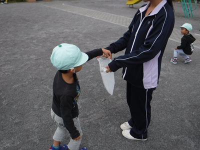 本日はパンダ組、キリン組、ライオン組で桃の木公園まで行きました。 日頃のお世話に感謝を込めて・・・ゴミ拾いをしてから遊びました。 広い公園は3クラス一緒でもまだまだ余裕。 子ども達は思いっきり駆け回っていました。 園にな…