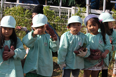 本日は子ども達が楽しみにしていた「焼き芋会」でした。 保護者ボランティアの方々にもお手伝い頂きながら、午前中は、なかよし農園でお芋堀りをしました。 大きいお芋がたくさんありましたよ! 午後は、ボランティアの方々と一緒に、…