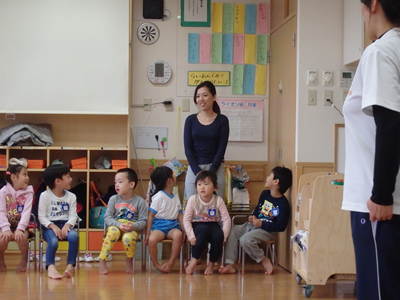 本日は保育士体験を行いました。 ママ先生は子どもたちに大人気です。 幼稚部さんは午前中リズムを行いました。 ピアノの音に合わせて様々な動きをします。 ほふく前進したり、四つん這いで歩いたり・・・ ママ先生方も一緒にやって…