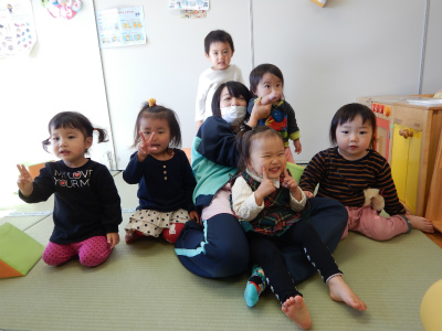 実習生が来ているので遊んでもらったり絵本を読んでもらったり しているイルカ組さんです(*^o^*) 英語教室があり、ゆりこ先生や先生達と手を繋ぎ 楽しそうに歌を歌っていました! イルカ組さんか…