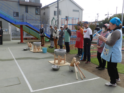 今日はお餅つき会がありました。 お父さん、お母さん、総勢8名の方にお手伝いいただき、みんなで力を合わせてお餅つきを行いました。 まずはお父さんたちがお手本!! そして子ども達も歳の数だけ杵を持ってお餅ををつきました。 今…