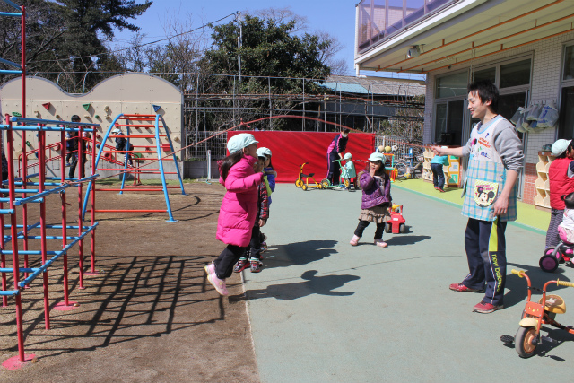 今日はゆりこ先生の英語教室の日! 今年度も残りわずかとなった英語教室。 子供たちはとっても上手に英語を話せるようになっています(^O^) いつもの自己紹介もスラスラと言えます(^o^) 園庭での自由遊びはみん…