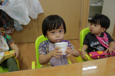 朝から元気いっぱいのお友達の声が聞こえてきました! このクラスは・・・ラッコ組のお友達です(^^)v ラッコ組のお友達は 最近自分でコップを持って牛乳をゴクゴク飲むことができるようになったり、 お菓子を自分…