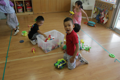 「あー!カメラだー!」 と朝から元気な幼稚部のお友達 カメラを向けるとはずかしがっちゃう子やブロックをみせにくる子と色々なお友達がいます(^O^) 午前中からさっそくお外に出て遊んでいます ラッコ組さんはベ…