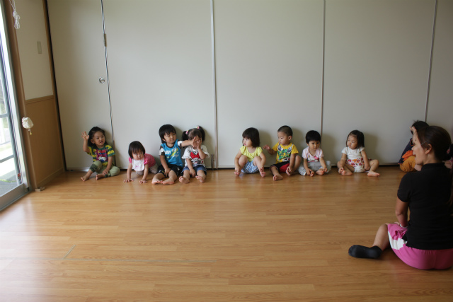 今日はゆりこ先生の英語教室がありました まずは、「Good morning」の歌を歌います!手遊び付きで上手に歌っています♪ お次は、ゆりこ先生にお名前を教えて、朝のご挨拶! 恥ずかしがりながらも、きちんと名前を言うこと…