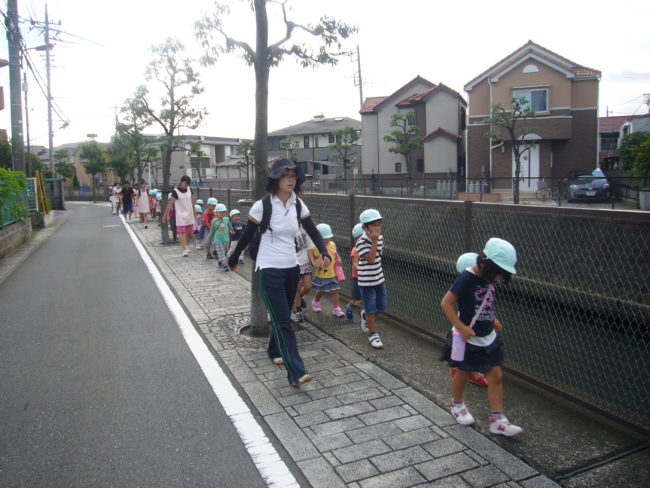 今日は避難訓練!!大地震を想定して谷塚中学校に避難しました。 ラッコ組ペンギン組の子ども達は散歩車、おんぶ、歩きと様々でしたが、いつもと違う雰囲気に落ち着いていて「どこへ行くんだ?」といった表情・・・。 中学校について休…