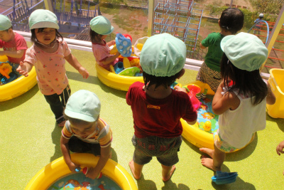今日は、保育部のお友達に密着してみました☆! 午前中は、みんなで水遊びをしたよ\(^o^)/ 水鉄砲やじょうろに水を上手に入れて お水のかけあいっこ♪ とても気持ちよかったね(*^^)v &n…