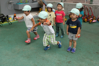 イルカ組のお友達は何をしているのかな? 今日も元気にみんなでかけっこ☆ 整列もとっても上手です。一番にゴールできないと泣く子もいるんですよ(^o^) 名前を呼ばれると「はい!」完璧にできるんです☆ 「あれあれなんかあるよ…
