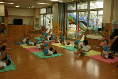 今日はてっちゃん先生の体操教室でした♪ 夏祭りも終わって運動会の練習も始まりました! 組体操の練習もみんな真剣です。 保育部のお友だちはお散歩にでかけました! ラッコ組さんもカートにのってご機…