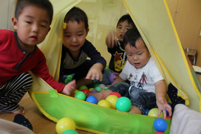 今日はお部屋の中で遊びました☆ 保育部のお友だちはボールプール!! みんなで楽しくボールを追いかけて遊んだよ!(^^)! こっちでは、お友だちとテントの中に入って作戦会議かな(^o^?) &n…