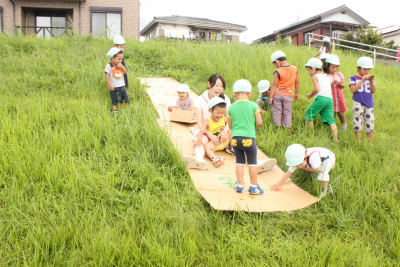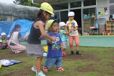 久しぶりに良いお天気でしたね? 今日は縦割り保育で水運びレースをしました!! 幼稚部さんと保育部さんで手を繋いでコップやビニール袋を使って水を運びました。 優勝はしょくぱんまんグループでしたが、どのチームも頑張りましたね…