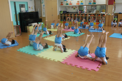 今日は体操教室がありました。 最近のキリン組・ライオン組は「組体操」に専念しています。 運動会に向けて、かっこよく凛々しい姿をみんなに見てもらいたくて頑張っています(^O^) 上記の写真は「肩倒立」 とても難しく、全員が…