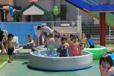 今日は、いい天気です\(^o^)/なかよし保育園のみんなも元気に登園です(^_^)v 保育部のみんなは、みんなでプールを楽しんだよ(^_^)v 冷たくて気持ちいいね(^_^)v 幼稚部のみんな…
