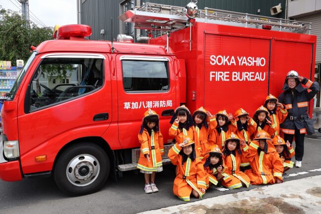 今日はキリン、ライオン組のお友達で 谷塚ステーションに消防署見学に行きました★ 消防車の中や救急車の中を見せてもらい、 「ホースがあるよ!」「これを押すとサイレンが鳴るんだ!」などと いろいろ…